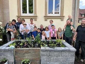 Unterstützt von der Förderung 5 für 500 der Initiative Rodachtal steht jetzt ein voll bepflanztes Mehrgenerationen-Hochbeet vor der Alten Schule in Welsberg, Itzgrund.