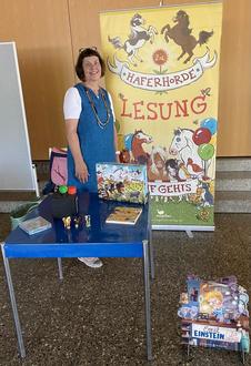 Am Montag, den 12.06.2023 versammelten sich alle Klassen der Oskar-Schramm-Schule in der Aula. Spannend las Frau Kolb aus Ihren Werken für Grundschulkinder „Haferhorde“ und „Emil Einstein“ vor. Dabei erklärte die Autorin ihre Ideen zu den Büchern. So konnten die Schüler und Schülerinnen in die Geschichten eintauchen und erfuhren viele Geheimnisse zu den Helden „Schoko“ und „Emil“.