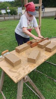 Vormittags drückten die Teilnehmenden die Schulbank und lernten die Anwendungsmöglichkeiten des Baustoffes Lehm in den Bereichen Fachwerksanierung, Trockenbau, feine Oberflächen, Lehmputze, Mauerwerk und Stampflehm. Nachmittags wurden an einer Fachwerkwand die moderne Methode mit speziellen Lehmsteinen und die historische Variante mit Flechtwerk der Ausfachung geübt. Zudem konnten die Teilnehmer erfahren, wie man einen Lehmstein oder einen Lehmwickel herstellt. Der Teilnehmerkreis war auch in diesem Jahr bunt gemischt: Jung und Alt, private Bauherren und Akteure aus Architektur und Kommunen.