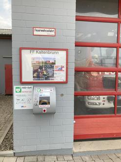 Der neue Defibrillator in Kaltenbrunn befindet sich am Feuerwehr Gerätehaus.