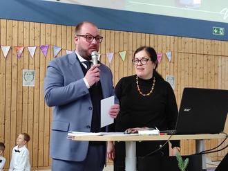 Darin würdigte er die Schule als wichtigen Ort des Lernens und der Gemeinschaft. Das Gemeindeoberhaupt ergänzte: „Diese Schule verbindet Tradition mit Zukunft und steht für großes Engagement aller Beteiligten von Lehrkräften, Gemeinde, über Eltern bis hin zu den Kindern. Diesen Gedanken griff Elternbeiratsvorsitzende Frau Alexandra Müller-Röhr auf und bedankte sich mit einem Blumengebinde beim gesamten Personal der Schule wie auch der Mittagsbetreuung. Eine wichtige Geste gerade an diesem Tag, der die gute Zusammenarbeit vor Ort verdeutlicht.