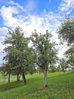 Obwohl fast jeder zweite Obstbaum im Untersuchungsgebiet ein Apfel ist und jeder vierte eine Pflaume oder Mirabelle, gehört der „Jubiläumsbaum“ zu den Birnen. Gerade die Birnbäume zählen durch ihren aufrechten, hohen Wuchs und ihr im Vergleich zu anderen Obstbäumen hohes Alter von bis zu 300 Jahren oft zu den besonderen Schönheiten in unserer Landschaft.