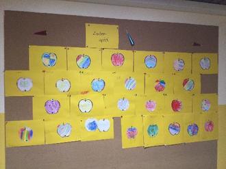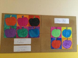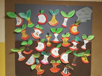 Auch die ästhetische Erziehung kam nicht zu kurz. Es wurden Zauberäpfel nach dem Vorbild von Reichsäpfeln, Äpfel mit verschiedenen Techniken oder auch nach der Art der Künstler Kandinsky und Andy Warhol gestaltet.
