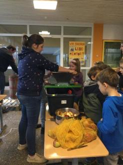 Die Schule des praktischen Lebens war vor allem durch gemeinsames Apfelkrümel backen, Blätterteigäpfel oder Apfelspieße und gemeinsames Apfelsaftpressen vertreten.