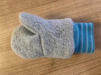 In Kaltenbrunn wurde ein einzelner grauer Kinderhandschuh (Fäustling) mit blau geripptem Bund gefunden.