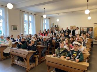 Vor Kurzem besuchte die Bayerische Kultusministerin, Frau Anna Stolz, unser Schulmuseum. Sie kam, um sich einen Live-Eindruck von der Vermittlungsarbeit im Museum zu machen und zeigte sich begeistert! Zunächst erlebte die Staatsministerin gemeinsam mit zahlreichen Vertreterinnen und Vertretern aus Politik, Museum und Schule eine historische Unterrichtsstunde mit einer 3. Klasse der Grundschule Ichenhausen, anschließend blickte sie Kindern über die Schulter, die - wie zu Urgroßmutters Zeiten - mit Feder und Tinte in ein Poesiealbum schrieben.