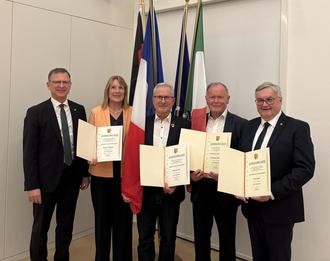 Die vier Ehrenamtlichen haben sich alle im Partnerschaftsverein Ichenhausen engagiert, der die Beziehungen zu Changé und St. Germain-le-Fouilloux (Frankreich) sowie Valeggio sul Mincio (Italien) für die Stadt Ichenhausen pflegt. Bürgermeister Robert Strobel betonte in seiner Laudatio, dass die Geehrten „im besten Sinne Brückenbauer“ seien.