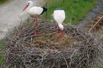 Im Storchennest in der Straße Am Boschhorn sind bereits drei junge Störche geschlüpft. Und auf dem Dach des Unteren Schlosses haben zwei Jungstörche das Licht der Welt erblickt, zwei weitere Eier werden dort noch ausgebrütet.