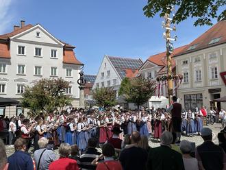 Für diese Premiere sorgten die Spielgemeinschaft Stadtkapelle Ichenhausen / Musikverein Ellzee, die Musikkapelle Hochwang-Oxenbronn, der Musikverein Rieden und der Fanfarenzug der Freiwilligen Feuerwehr Ichenhausen, die dann am Kriegergedächtnisbrunnen zusammentrafen und unter großem Beifall drei Musikstücke als Gemeinschaftschor präsentierten. Für eine weitere Neuerung beim Jahrmarkt sorgten Kinder und Jugendliche, die beim ersten Von-Kind-zu-Kind-Flohmarkt ihre Spielgeräte, Bücher, etc. anboten. "Darauf lässt sich im nächsten Jahr gut aufbauen", freuten sich der Vorsitzende der Wirtschaftsvereinigung Ichenhausen