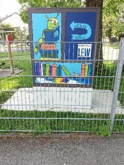 Wer Lust auf Bücher hat, kann den Bücherschrank aufsuchen. Dort gibt es Bücher für Groß und Klein zum Ausleihen, auch zum Tauschen, auch welche zur freien Mitnahme. Ausgelesene Bücher können dort hineingestellt und „neue“ Bücher herausgenommen werden. Hergestellt wurde der Bücherschrank aus einem ehemaligen LEW-Verteilerschrank. Der städtische Bauhof hat die Bodenplatte erstellt, die Kita Heilig-Kreuz in Hochwang phantasiereich und schön bemalt. So wurde er auch zu einem optischen Schmuckstück. Der Soldaten- und Kameradschaftsverein Hochwang e.V. übernimmt dankenswerterweise die Betreuung des Bücherschrankes.
