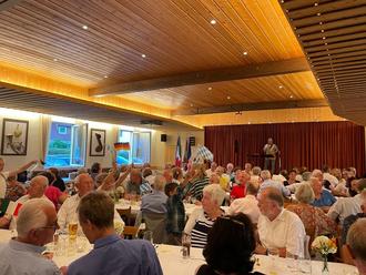 Anlässlich des Stadtfestes 2023 reiste Bruna Bigagnoli mit 24 Erwachsenen und 7 Kindern aus unserer italienischen Partnerstadt Valeggio sul Mincio bereits Freitagnachmittag an - ebenso eine Gruppe aus Changé in Frankreich. Organisiert vom Partnerschaftsverein genossen sie im Musikheim Hochwang gemeinsam mit 89 Bürger*innen der Stadt Ichenhausen und Vertretern der Wirtschaftsvereinigung das köstliche, liebevoll und reichhaltig zubereitete Buffet des Musikvereins Hochwang. Sowohl im persönlichen Gespräch als auch beim Tanz begleitet durch die musikalischen Beträge Horst Schades vertieften die Teilnehmer*innen bestehende Freundschaften und schmiedeten Pläne für weitere Begegnungen in den Partnerstädten.
