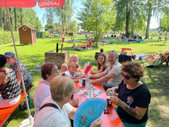 Samstagnachmittag nahmen sich italienische Gäste und Mitglieder des Partnerschaftsvereins eine kurze Auszeit von den vielfältigen Aktivitäten des Stadtfestes und der Sommerhitze. Einige – vor allem die Kinder – suchten Erfrischung im kühlenden Nass des Stadtbades und ließen sich mit der gesamten Gruppe von der zuvorkommenden Gastfreundschaft des Stadtbadteams und den vorzüglichen Torten des Kleingartenvereins bei Kaffee und kalten Getränken verwöhnen.