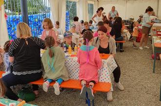 Rund 240 Kinder und Jugendliche - die Kleineren in Begleitung von Eltern oder Großeltern - erreichte die Aktion über die Woche verteilt. Stadtjugendpflegerin Petra Tophofen freut sich über diesen großen Andrang und ist überzeugt, dass sich Kinder und Jugendliche danach sehnen, etwas mit den eigenen Händen zu erschaffen, die Beschaffenheit des Materials sinnlich zu erfahren und beim Tun zu spüren, wie die Ideen kommen. Die 16jährige Teresa Haug, selbst eine begeisterte Zeichnerin, machte Ferienarbeit bei "Kunst im Zelt" und staunt über die Ausdauer der Kinder. "Wenn sie einmal angefangen haben, bleiben sie konzentriert bei der Sache und eine Idee kommt zur nächsten." Ob und wie das Projekt im nächsten Jahr wieder angeboten werden wird, wird das Team im Nachgang besprechen. Einerseits stolz und glücklich über den großen Andrang, andererseits auch nahe an der Überlastung, muss gut überlegt sein, wie es nächstes Jahr weitergeht. Vielleicht ist das Wetter im Sommer 2024 ja gnädiger und "Kunst im Bad" kann wieder stattfinden.Ohne Unterstützung wäre ein solches Projekt nicht möglich.Herzlichen Dank an Helfer/ innen und Sponsoren.