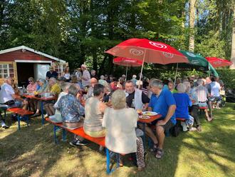 Der dritte Bürgermeister der VG Ichenhausen, Herr Hubert Schuler bedankte sich für die Einladung und erwähnte in seinem Grußwort die Wichtigkeit des Sozialverbands und lobte die regen Aktivitäten des VdK Ortsverband Ichenhausen-Ellzee. Ein besonderes Vergnügen war das Grillen durch Herrn Johann Schnitzler, der die Teilnehmenden kulinarisch verwöhnte. Der Duft von frisch gegrilltem Fleisch und Würstchen lockte alle Anwesenden an den Grillplatz, wo man sich bei gutem Essen und kühlen Getränken austauschte und den Tag gemeinsam genoss. Das Sommerfest war ein voller Erfolg und bot eine hervorragende Gelegenheit, alte Freundschaften zu pflegen und neue Kontakte zu knüpfen.