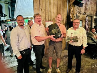 Der Ortssprecher von dort übergab ein Bildbuch von der Fahnenweihe in unserem Deubach 2006 an den 3. Bürgermeister, Hubert Schuler, sowie ein Fass Bier an Leonhard Sailer. Schuler bedankte sich recht herzlich bei den Gästen aus Deubach und versprach einen Gegenbesuch.