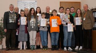 Fortunas beste Schützen stehend v.l.: Horst Reichle, Werner Hirsch, Anna Kollmann, Adolf Forstner, Diara Dahmen, Patricia Schmid, Henry Paintner-Frei, Christian Band, Christof Stefan, Magnus Kollmann, Feenja Albrecht, Alexander Reichle, Nina Karg (sie nahm in Vertretung von Leonie und Alexander Thoma die Ehrungen entgegen), Bruno Angermeyer. Leider auch nicht auf dem Bild sind Richard Thalhofer und Friedrich Gumpp.