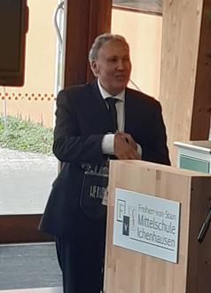 Der Bürgermeister von Ichenhausen, Herr Strobel, richtete in seinem Grußwort anerkennende Worte an Markus Mayer und lobte dessen Einsatz für die Schule und die Gemeinde. “Herr Mayer hat in den vergangenen vier Jahren nicht nur die Schule, sondern auch das schulische Umfeld positiv geprägt”, betonte der Bürgermeister.