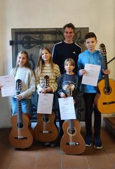 Beim Regionalwettbewerb „Jugend musiziert“ am 18. und 19. Januar in Augsburg erzielte das Gitarrenquartett der Sing- und Musikschule Ichenhausen einen 1. Preis mit hervorragenden 23 Punkten. Luisa Bisle, Matilda Jehle, Naemi Trautwein und Felix Göder überzeugten mit einem anspruchsvollen, 10-minütigen Programm und qualifizierten sich damit für den Landeswettbewerb.