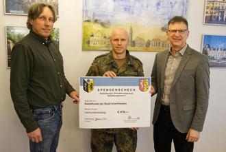 Das Geld kommt zum Beispiel Bürgern zu Gute, denen Obdachlosigkeit droht. Über diese Spende freute sich auch Stadtratsmitglied Tobias Ebner (links), Referent des Stadtrates für die Patenkompanie. Für das Jahr 2025 sind bereits mehrere gemeinsame Aktivitäten geplant. So veranstaltet die Patenkompanie am 19.04.2025 mit Unterstützung der Veteranen-, Soldaten- und Kameradschaftsvereine im Stadtgebiet einen 15K3-Gedenkmarsch, an dem ab 13 Uhr alle Lauf-begeisterten Bürgerinnen und Bürger aus Ichenhausen und Umgebung zu einem 10 km-Rundmarsch aufbrechen werden. Anmeldung zum Gedenkmarsch möglich bei Stadtratsmitglied Tobias Ebner per Mail an vsv.rieden@t-online.de. Von der Anmeldegebühr in Höhe von 10 Euro gehen 8 Euro an den Verein Oberst Schöttler Versehrten-Stiftung und an den Deutschen Kinderhospizverein e.V.