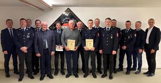 Kommandant Thomas Stocker und Vorstand Johannes Linder dankten allen Mitgliedern, Spendern und Helfern der Feuerwehr, ihren Familien und der Gemeinde, die die Arbeit der Einsatzkräfte unterstützen.