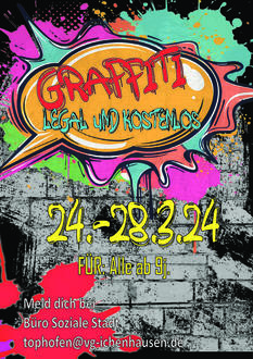 Ihr kennt bestimmt Graffiti. Ihr habt sicherlich schon Kunstwerke auf Häuserwänden oder Straßenunterführungen gesehen. Es gibt sehr ansprechende Werke. Vielleicht wart ihr schon mal staunend vor einer Wand gestanden und habt gedacht: „WOW, wie cool ist das denn. Wie haben die Künstler das gemacht?“ Ganz so einfach wie die Bilder aussehen, ist es nicht. Die Größe einer Wand stellt so manche Herausforderung dar. Einfach ein Objekt nach dem anderen drauf klatschen? Nein, so geht das nicht. Das haben wir uns auch gedacht und anders geplant. Wir werden bei unserem Projekt mit einem Augsburger Graffiti Verein zusammenarbeiten. Die Bunten e.V. (besagter Graffiti Verein) haben viel Erfahrung mit der Straßenkunst. Einmal weil sie selber alle Graffiti Künstler sind und weil sie Workshops für Kids und Jugendliche anbieten. Wir möchten Euch die Möglichkeit geben, eine neue Kunstform kennen zu lernen. Ein bisschen Stilgeschichte und Szenewissen über diese Form der Kunst wird dabei sein in den 5 Tagen. Aber vor allem könnt ihr ausprobieren, und das auf legale Weise, wie das mit dem Sprayen funktioniert. Gemeinsam in der Gruppe legen wir ein Titelthema für die 2 x 18 Meter Wände fest. Fünf Tage mit jeweils sechs Stunden werden wir zusammen ein Kunstwerk erschaffen, über das die Ichenhauser staunen werden. Selbstverständlich gibt’s immer wieder Pausen zwischendurch, in denen ihr euch stärken und mit den anderen quatschen könnt. Musik werden wir auch mitbringen, ein wenig HipHop vielleicht, damit wir auch so richtig in Stimmung kommen. 6 Stunden eine Spraydose in der Hand halten und den Finger auf dem Sprühkopf – das geht nicht, das wollen wir auch nicht. Es soll Spaß machen, hip und cool sein, was wir mit Euch vorhaben. Flyer werden rechtzeitig verteilt, ebenso Plakate in den Schulen. Höchstens 15 Kids können an unserem Projekt teilnehmen.