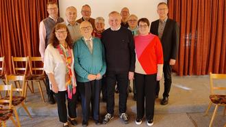 Vordere Reihe v. Links: Renate Merk Vertreterin der Frauen, Friedrich Merk Beisitzer, Harald Rafler Vorsitzender, Rita Rafler Kassiererin, - Hintere Reihe v. Links: VdK Kreisgeschäftsführer Frederic Fuchs, Johann Schnitzler stellvertretender Vorsitzender, Jochen Haigis Beisitzer, Bruni Schäffer Beisitzerin, Reinhold Spielmann Schriftführer, Elisabeth Deubler Beisitzerin, 1. Bürgermeister Robert Strobel