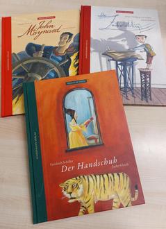 „Der Panther“, „Herr Ribbeck“ und „John Maynard“ rufen bei vielen von uns Erinnerungen wach. Gedicht- und Balladenklassiker die zum deutschen Kulturgut zählen, aber wie kann man Kinder dafür begeistern? Wir freuen uns Ihnen die kleine faszinierende Ausstellung des Kindermann Verlags in unserer Stadtbücherei St. Johannes zeigen zu dürfen. Unter dem Motto „Zauberhafte Welten in Bildern“ werden neben der Kinderbuchreihe „Poesie für Kinder“ ausgewählte Bilderbuchseiten auf Tafeln ausgestellt. Das Besondere: Renommierte Künstler haben die Bücher illustriert.