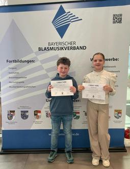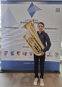 Können. Philipp Schneider (Tuba, Altersgruppe 2) und Valentin Seitz (Trompete, Altersgruppe 1b) erreichten mit jeweils 94 Punkten das Prädikat „ausgezeichneter Erfolg“. Valentin wurde hiermit in seiner Kategorie Bayrischer Landessieger.