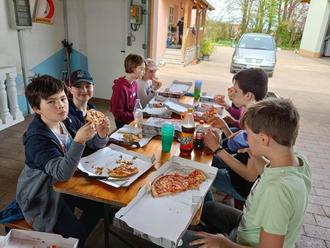 Am Samstag, 22.04. pünktlich um 10:00 Uhr starteten die Minis wieder ihre Altpapiersammlung. Fast die komplette Gruppe der Ministranten half tatkräftig mit die ordentliche Menge Papier einzusammeln. Nach drei Stunden Arbeit waren zwei Anhänger voll und die Kids hatten sich ihre Pizzen verdient. Nach ein bisschen toben, Verstecken- und Fangenspielen ging es dann Richtung Waldhaus Einsiedel im Gramschatzer Wald. Dort wurde im Hochseilgarten, nach einer kurzen Einführung, drei Stunden lang geklettert.