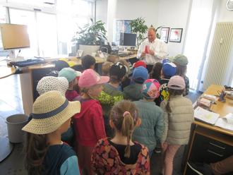 Am Montag, den 28.04.2025 waren wir mit den Sonnenblumen in der Euerbacher Sparkasse. Pünktlich um 8.45 Uhr wurden wir in der Lobby der Sparkasse von den Mitarbeitern empfangen. Herr Straub erklärte uns sehr viele interessante Dinge: Sparbuch, Konto, Geldautomat, Zählmaschine für Scheine und Münzen. Zum Abschluss bekamen wir noch eine Sparkassentüte gefüllt mit Malkreide, Klebezetteln und vielen tollen Dingen!