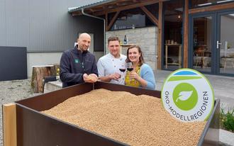 Regionale Bio-Kichererbsen halten Einzug in die kulinarische Vielfalt der Öko-Modellregionen. Dafür sorgen engagierte Landwirte wie Benedikt Endres (links) und Lorenz und Lisa Berndt vom Würzburger Schützenhof, die regionale Falafel beim kommenden Würzburger Weindorf anbieten.