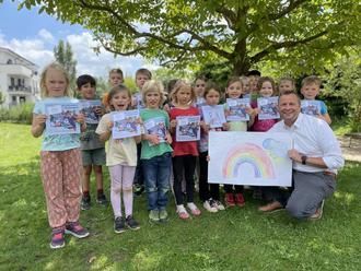 Mit kleinen Dingen eine große Freude bereiten - das durfte die Madinger GmbH im Euerbacher Kindergarten mit den Lernheften zum Thema Verkehrserziehung. Die Kinder der Sonnenblumengruppe bedankten sich mit einem tollen Regenbogenbild, das jetzt einen schönen Platz in der Firmenzentrale in Euerbach gefunden hat! Oliver Madinger (Geschäftsführer) nahm das farbenfrohe Bild in Empfang.