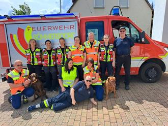 Ausserdem hat uns sehr gefreut, dass unser neuer KBI Andreas Schraut und KBR Holger Strunk durch ihren Besuch ihr Interesse an unserer Arbeit gezeigt haben. Sowie ganz herzlichen Dank an die politische Gemeinde Euerbach, vertreten durch Manfred Peter, Christina Lex vom Bayer. Feuerwehrverband Abt. RHOT, unserem 1. Kommandanten Thomas Saam und unseren Kameradinnen und Kameraden der FFW Sömmersdorf und der Rettungshundestaffel für deren großartige Unterstützung bei der Ausrichtung der Prüfung, sowie deren Verwandten, Freunden und Bekannten, die sich für uns die Zeit genommen haben als Versteckpersonen mitzuwirken.