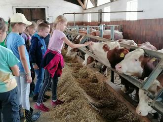 Zunächst stellte die Familie ihren Bauernhof und ihre Tiere vor und hinterfragte das Wissen der Kinder über die Landwirtschaft. Anschließend fuhren die Kinder und das Betreuerteam zum freiliegenden Hühnerstall, wo die Kinder Futter an die Hühner ausgeben konnten.