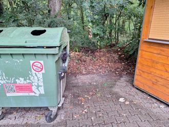 Der Waldrand hinter den Containern wird immer mehr zur Biomülldeponie. Essensreste wie Brot etc. werden abgelagert.