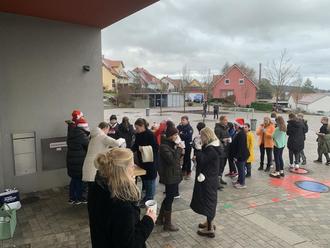 Am letzten Schultag vor den Weihnachtsferien wurden wir nach unserem gemeinsamen Weihnachtslauf mit Punsch und Plätzchen belohnt. Das hat auf jeden Fall die richtige Weihnachtsstimmung hergestellt und war eine kleine Entschädigung für das unweihnachtliche Wetter. Im Anschluss erfolgte der krönende Abschluss: Der Elternbeirat gab das Christkind! Jede Grund- und Mittelschulklasse durfte sich im Vorfeld ein Präsent wünschen, welches heute vom Elternbeirat überreicht wurde. So durften sich beispielsweise die ersten Klassen über eine bewegte Pausenspielbox freuen. Ein großes Tic Tac Toe Spiel, Springseile, Klettbälle, ein Fußballtor und noch mehr waren weitere Specials für die Grundschule.
