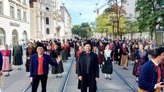Mit einer gemischten Gruppe aus Musikern und Trachtlern nahm die ILE-Oberes Werntal mit 150 Personen am Trachten- und Schützenzug 2024 in München teil.