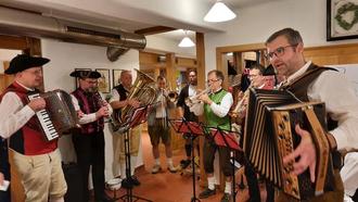 Im vollen Gasthaus des „Fränkischen Hofes“ blieb es nicht bei langen Dankesreden – Es wurde musiziert und gesungen. Auf Basis des neuen Liederheftes starteten die Musikanten mit dem „Kreuzberglied“, gefolgt vom „Steigerwaldlied“ und dem „Gochsumer“. Nach dem rund dreistündigen Wirtshaussingen ging es zum „Wunschkonzert“ über. Das hieß: jeder, der ein Instrument dabeihatte, konnte mitspielen. Damit hat das neue Liederheft seine Bewährungsprobe bestanden, Initiator und Gäste waren höchst zufrieden.