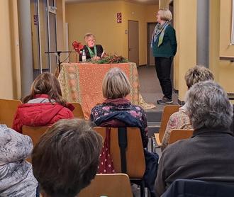 Zur diesjährigen Autorenlesung hatte das Büchereiteam Renate Eckert eingeladen. Die Autorin und frühere Journalistin ist als Mitglied der Schweinfurter Autorengruppe durch Lesungen und Veranstaltungen schon vielen Besucherinnen und Besuchern bekannt. Mitgebracht hatte sie ihren Unterfranken-Krimi „Schweigegebot“, bei dem es sich um eine fiktive Geschichte handelt, die aber auf einer wahren Begebenheit beruht, die vor einiger Zeit die Öffentlichkeit in Unterfranken erschütterte.