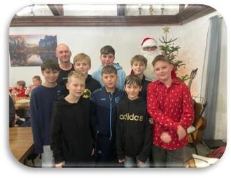 Natürlich durfte auch der Nikolaus nicht fehlen. Er hatte für alle Kinder des Vereins eine kleine Überraschung dabei: VfL Euerbach Socken, die jedes Kind erfreuten und ein kleines Andenken an die Weihnachtsfeier darstellten.