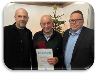 Ein weiterer Höhepunkt der Feier war die Ehrung langjähriger Vereinsmitglieder. Für ihre außergewöhnliche Treue zum Verein wurden Mitglieder für 25, 40, 50, 60 und sogar 75 Jahre Vereinszugehörigkeit ausgezeichnet. Besonders emotional war die Auszeichnung von Walter Hetz, der als drittes Vereinsmitglied die beeindruckende Marke von 75 Jahren Mitgliedschaft erreichte. Er wurde von den Anwesenden mit Standing Ovation für sein außergewöhnliches Engagement und seine lange Verbundenheit zum Verein geehrt.