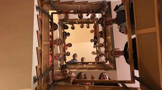 Gemeinsam geht es rund: 5a und 5b mit den Lehrkräften im Schullandheim Hobbach.