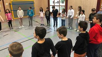 An einem Strang: Fünftklässler bei Kooperationsspielen.