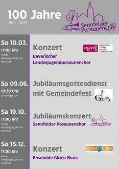 Der Posaunenchor begeht das Jubiläum mit vier verschiedenen Veranstaltungen, die über das Jubiläumsjahr verteilt sind.