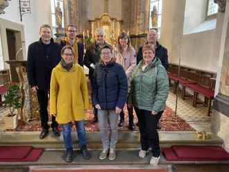 Die Pfarrgemeinde Sömmersdorf verabschiedete im Sonntagsgottesdienst die alte Kirchenverwaltung und führte die neue ein. Pfarrer Grzibek bedankte sich bei Harald Homrighausen und Roland Nöth für ihre ehrenamtliche Tätigkeit in der Kirchenverwaltung. Ein besonderer Dank galt Reinhard Stahl, der die Aufgabe des Kirchenpflegers 24 Jahre inne hatte. Das Verwalten und Betreuen des Vermögens gewährleistet die Selbstständigkeit der Kirchengemeinde vor Ort. Pfarrer Grzibek bedankte sich mit einem Präsent für die jahrelange, vertrauensvolle und freundschaftliche Zusammenarbeit. Dankbar, dass sich wieder Personen zur Wahl der Kirchenverwaltung zur Verfügung gestellt haben, konnte Pfarrer Grzibek das neue Team vorstellen. Doris Pfister hatte sich erneut bereit erklärt mitzuarbeiten. Neu im Team sind Karina Dix und Florian Selzam. Margit Büttner, die bereits seit vielen Jahren im Gemeindeteam und in der Ministrantenarbeit tätig ist, hat das Amt des Kirchenpflegers übernommen. Die ersten anfallenden Arbeiten wurden bereits in Zusammenarbeit mit alter und neuer Kirchenverwaltung getätigt. Auch neue Ideen wurden bereits umgesetzt. Ein herzliches Vergelts Gott für den ehrenamtlichen Einsatz zum Wohle der Kirchengemeinde.