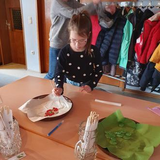 Gemeinsam bastelt jedes Kind ein Glühwürmchen, gestaltet ein Namensschild auf Mandarin und probiert, Gummibärchen mit Stäbchen zu essen. Wir beten, singen und freuen uns über unsere Gemeinschaft.