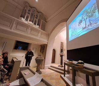 Nach einem Blick in die Geschichte Palästinas schilderte Altbürgermeister Arthur Arnold mit eindrücklichen Bildern und Worten Israelerfahrungen in den vergangenen Jahrzehnten. Die letzte Fahrt fand 2023 statt und auch einige Teammitglieder waren dabei. Dadurch kamen den GottesdienstbesucherInnen sowohl die eindrücklichen Orte des kleinen Landes als auch der Dauerkonflikt sehr nahe. Es ist kaum vorstellbar, wie die schwierige Lage sowohl der Menschen in Palästina als auch der jüdischen Bevölkerung dort und in vielen Teilen der Welt, zu Frieden und Gerechtigkeit führen kann.