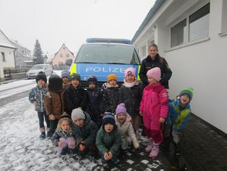 Voller Begeisterung durfte sich jeder in den Polizeibus setzen und die Polizistin Leni hat das Martinshorn eingeschaltet.