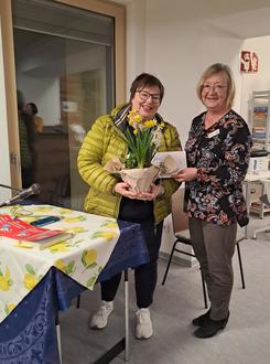 Für den sehr kurzweiligen Abend bedankte sich die Büchereileiterin Erika Krüger mit einem Frühlingsgruß bei Ingeborg Wollschläger