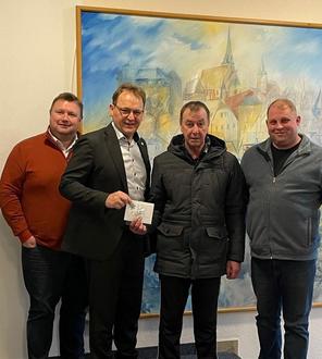 Bei der Präsentübergabe und Verabschiedung von links Bauamtsleiter Christian Ebertsch, Bürgermeister Bernd Rebhan, Heinrich Mertel, Bauhofleiter Jürgen Ludwig.